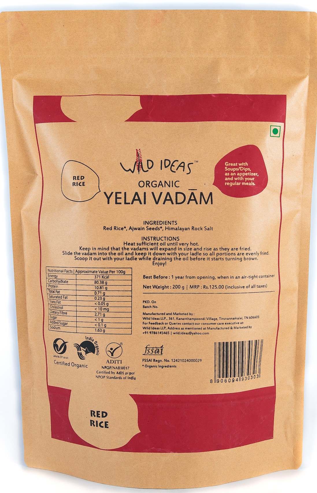 Wild Ideas : Yelai Vadam (Papad) – Red Rice 200g