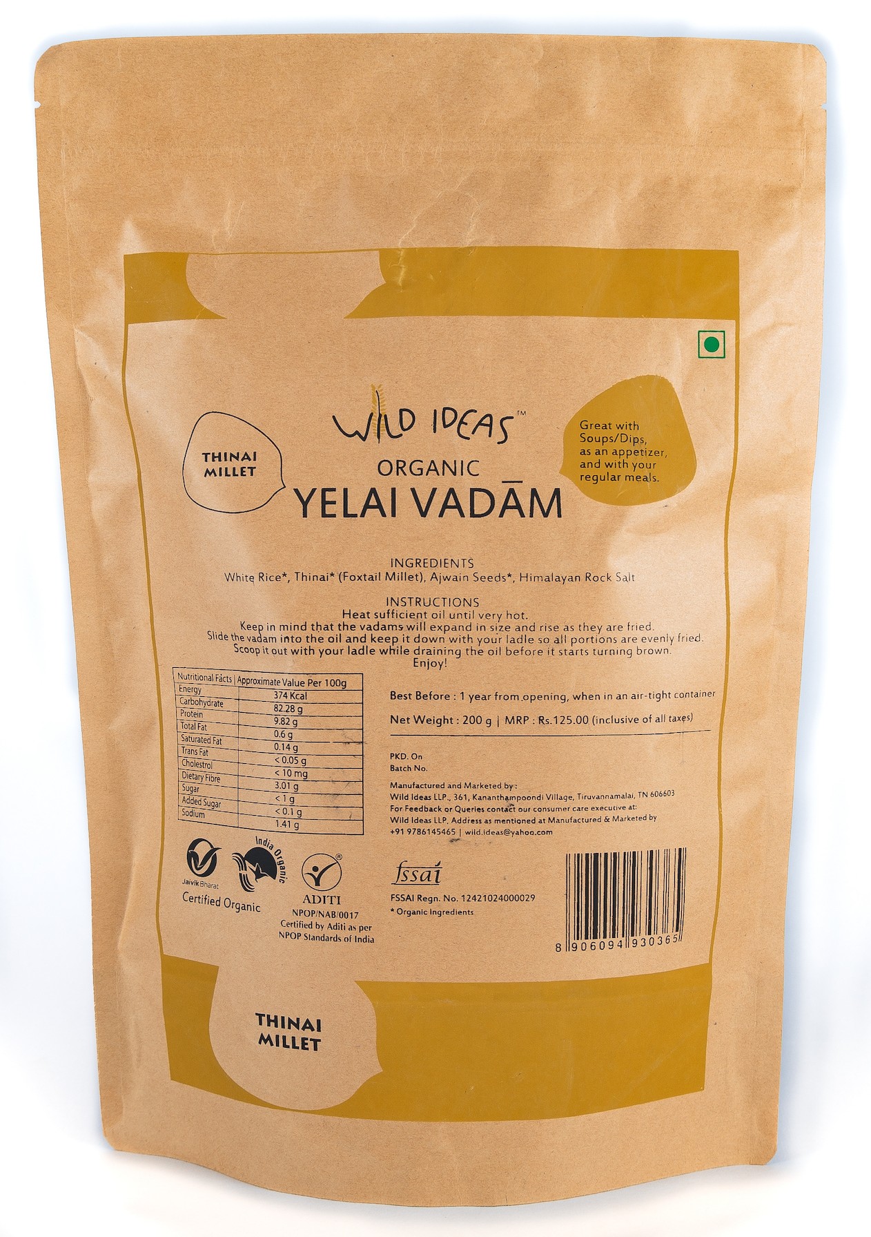 Wild Ideas : Yelai Vadam (Papad) – Barnyard [Kudaravali] Millet 200g