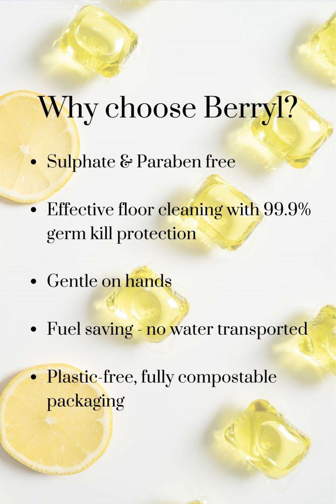 Floor disinfection is a daily routine for most of us and we use roughly one bottle per month. Re-using those bottles is tricky and even though theoretically recyclable, less than 10% would actually get recycled. Unfortunately, most of them would end up in a nearby landfill, or worse, our water bodies. BERRYL to the rescue!
