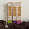 3 packs, each consisting of 40 flower-based incense sticks and 1 incense holder.