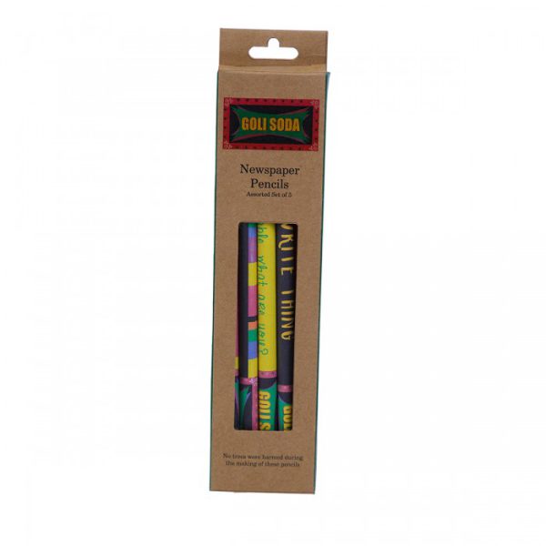 This consist of upcycled multicolor newspaper pencils