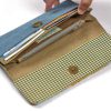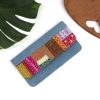 This wallet is made from denim and small pieces of cotton fabric scraps that is hand- sewn together to give it a distinct and exquisite look.