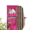 Upcycled cutlery holder made from fabric scraps by women crafters. It can be rolled on for a compact feel & easy to carry while travelling.