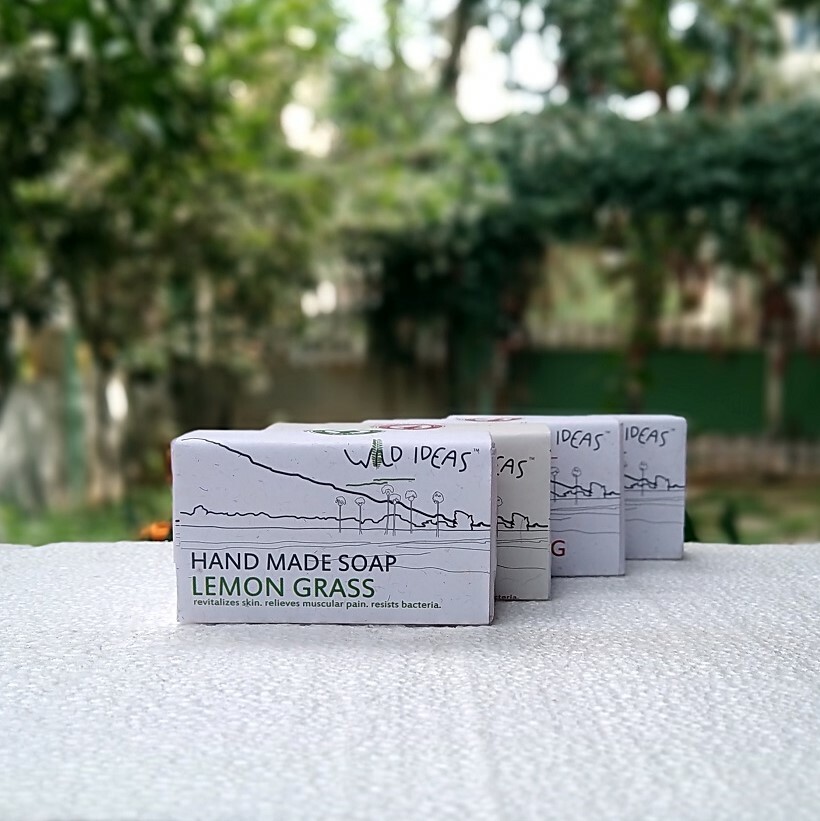 Wild Ideas Hand-Made Lemongrass soap that revitalizes the skin and relieves muscular pain. Lemongrass soap is anti-microbial and fungicidal. Lemongrass soap acts as an anti-bacterial and anti-fungal agent, which means it is beneficial for pimple. It acts as a toner, minimizing pores of the skin and toning the tissues and muscles. It reduces wrinkles, so use the soap for a toned and clear complexion.