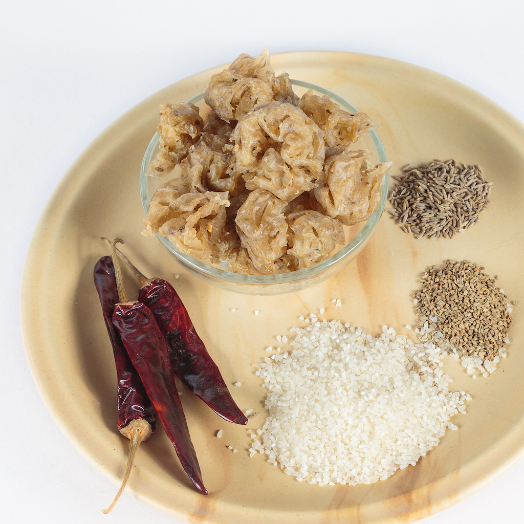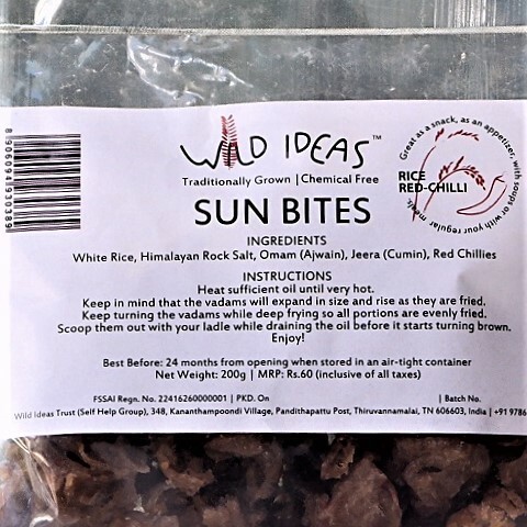 These Bite-sized, sun-soaked treats are the perfect addition to any meal or snack time. Made from Organic white rice and seasoned only with natural Himalayan rock salt and a blend of warm, digestive spices like Omam (Ajwain), Jeera (Cumin Seeds), and Red Chillies, these fryums are 100% pure. They are great as snacks, appetizers, with soups, or with your regular meal. By choosing this product, you get a crispy, flavourful treat without any of the artificial ingredients found in commercial fryums.