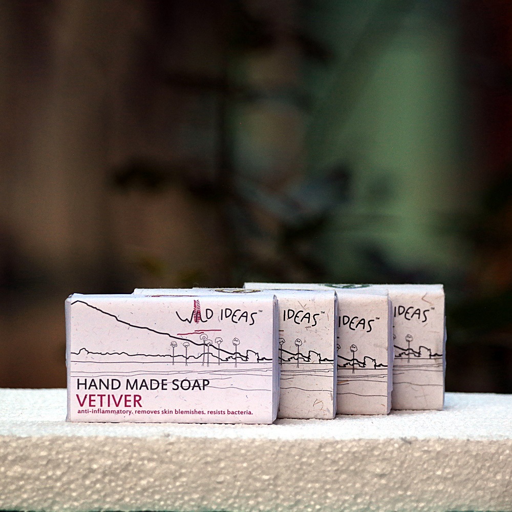 The natural, hand-made vetiver soap by Wild Ideas gives clean skin. Vetiver has cooling properties and this can be a boon for people with sensitive skin. Vetiver treats inflammation & improves skin tone. The vetiver root extract has an antiseptic and anti-microbial property that helps in getting rid of acne and pimples. It clears the skin, giving it a fresh and rejuvenated look. Vetiver oil plays a major role in reducing wrinkles and blemishes. It helps in tightening firming skin, which gives you a youthful look. this hand-made vetiver soap that is anti-inflammatory, removes skin blemishes and resists bacteria.